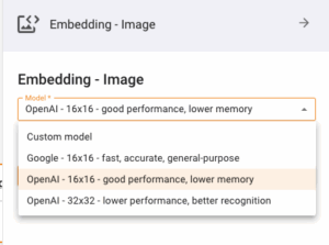 | Model | Image embedding model to use | Default: “clip-vit-base-patch32” Available: CLIP, ResNet, EfficientNet |