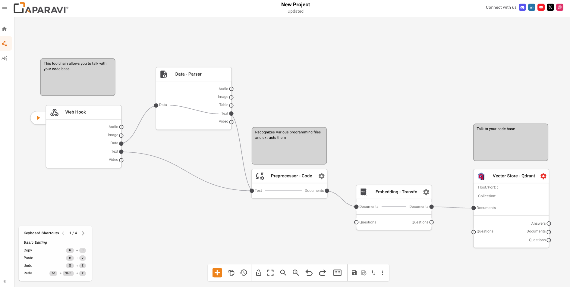 Description: The data parser node processes uploaded files and converts them into a format that can be consumed by the code preprocessor. It handles various file formats and extracts the raw text content needed for code analysis.