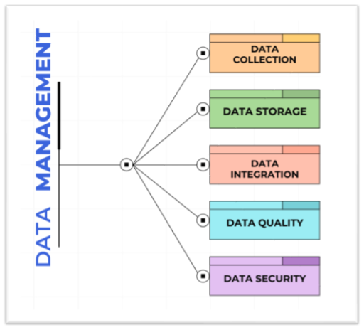 A strong data security framework minimizes the risk of data breaches and protects organizational and customer information. The figure below shows the key components of Data Management.