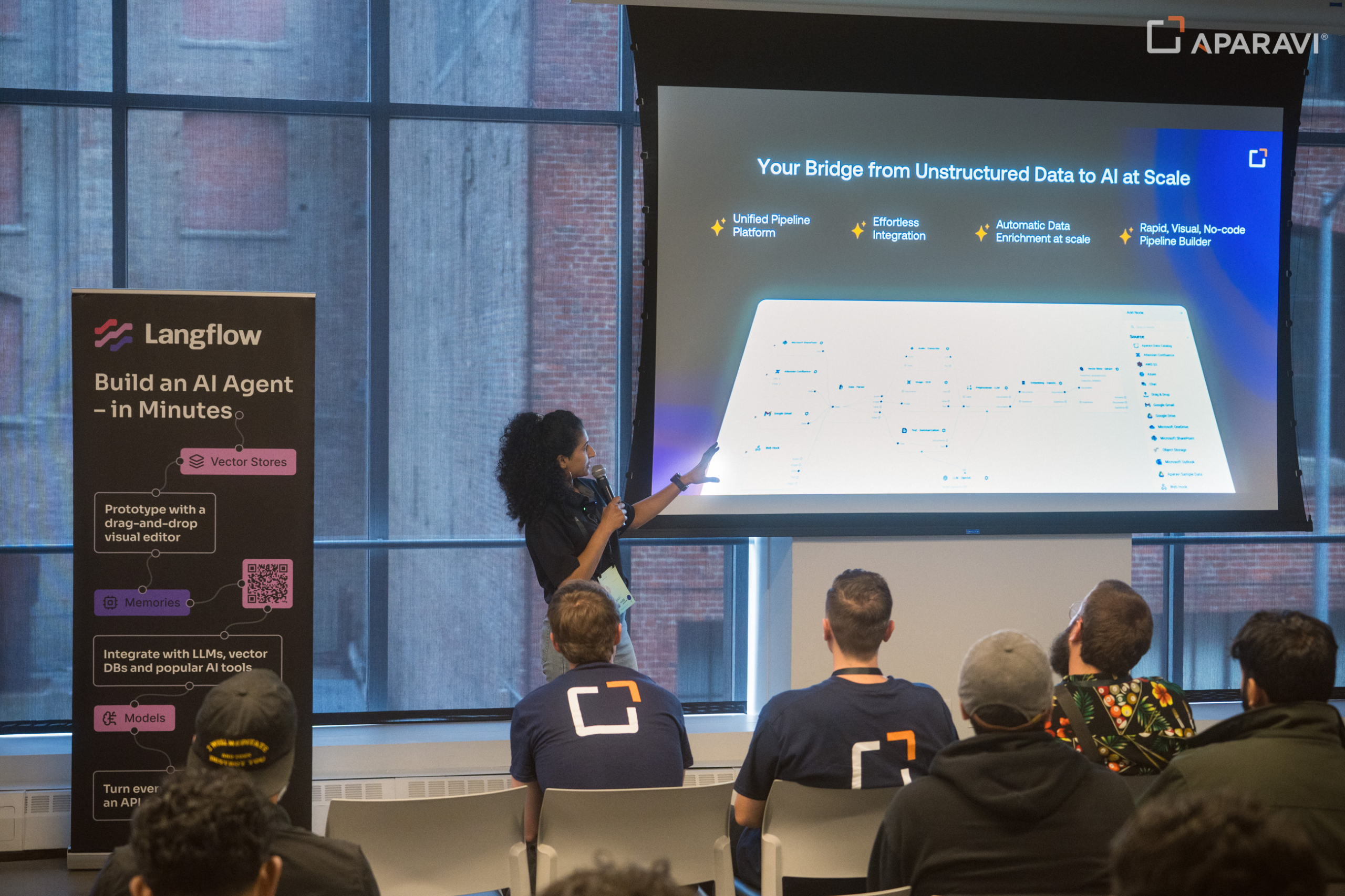 We brought the Hacking Agents community together at AWS Builder Loft in San Francisco on 07/31/2025 for fast demos, real use cases, and hands-on learning with AI agents. The highlight: how Aparavi’s Data Toolchain and MCP server connect to Langflow for natural-language workflows on unstructured data.