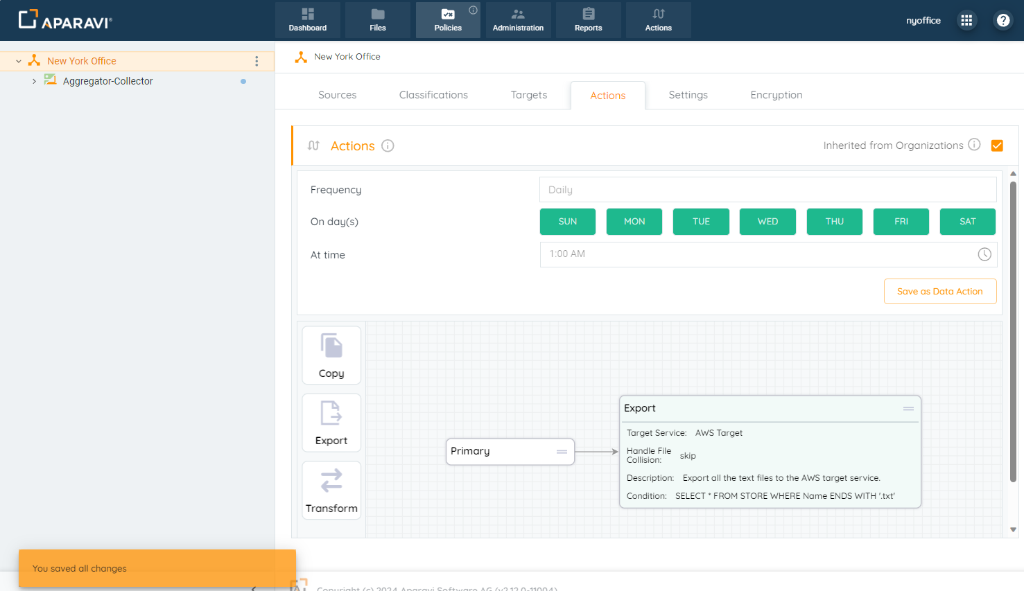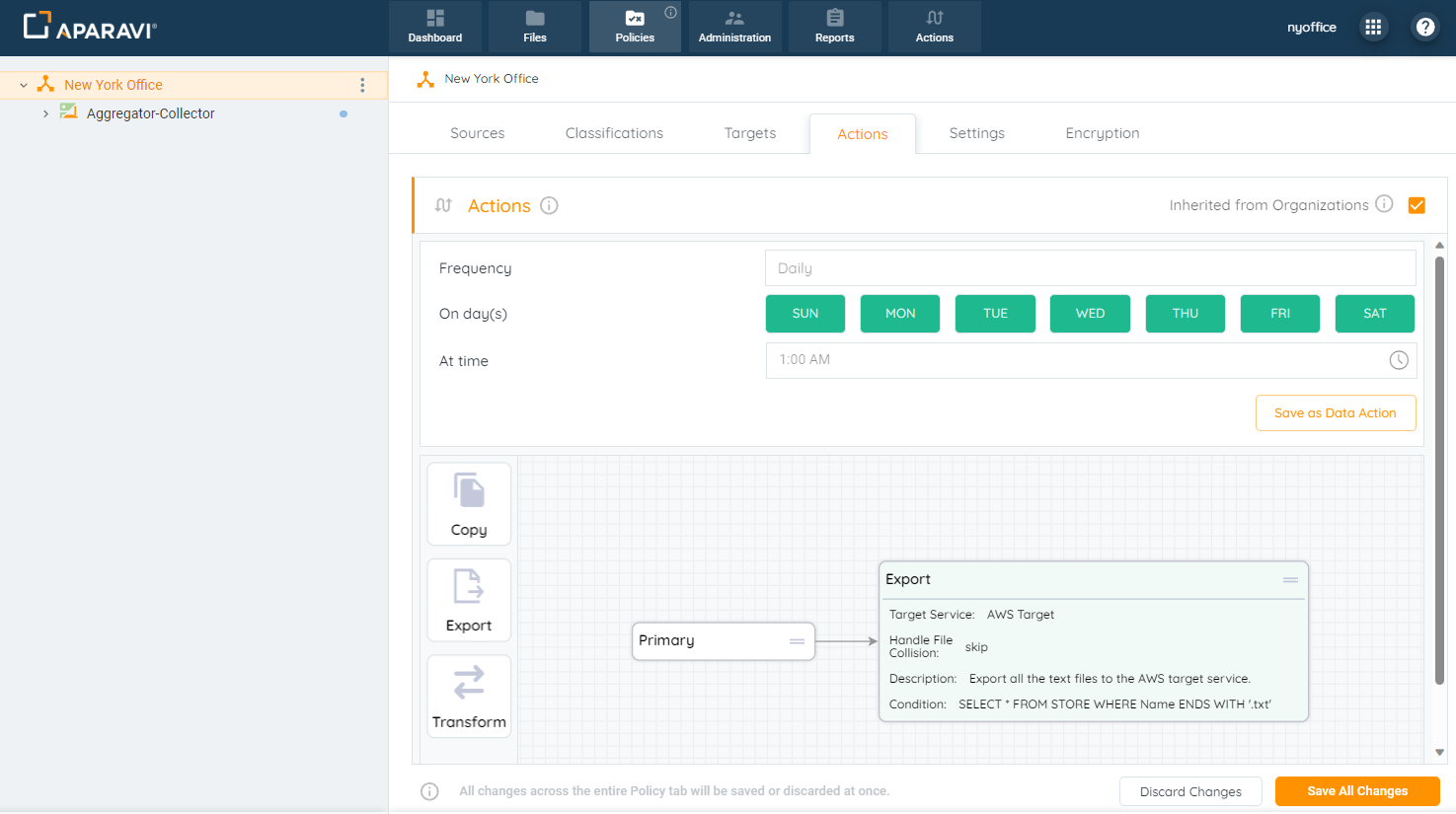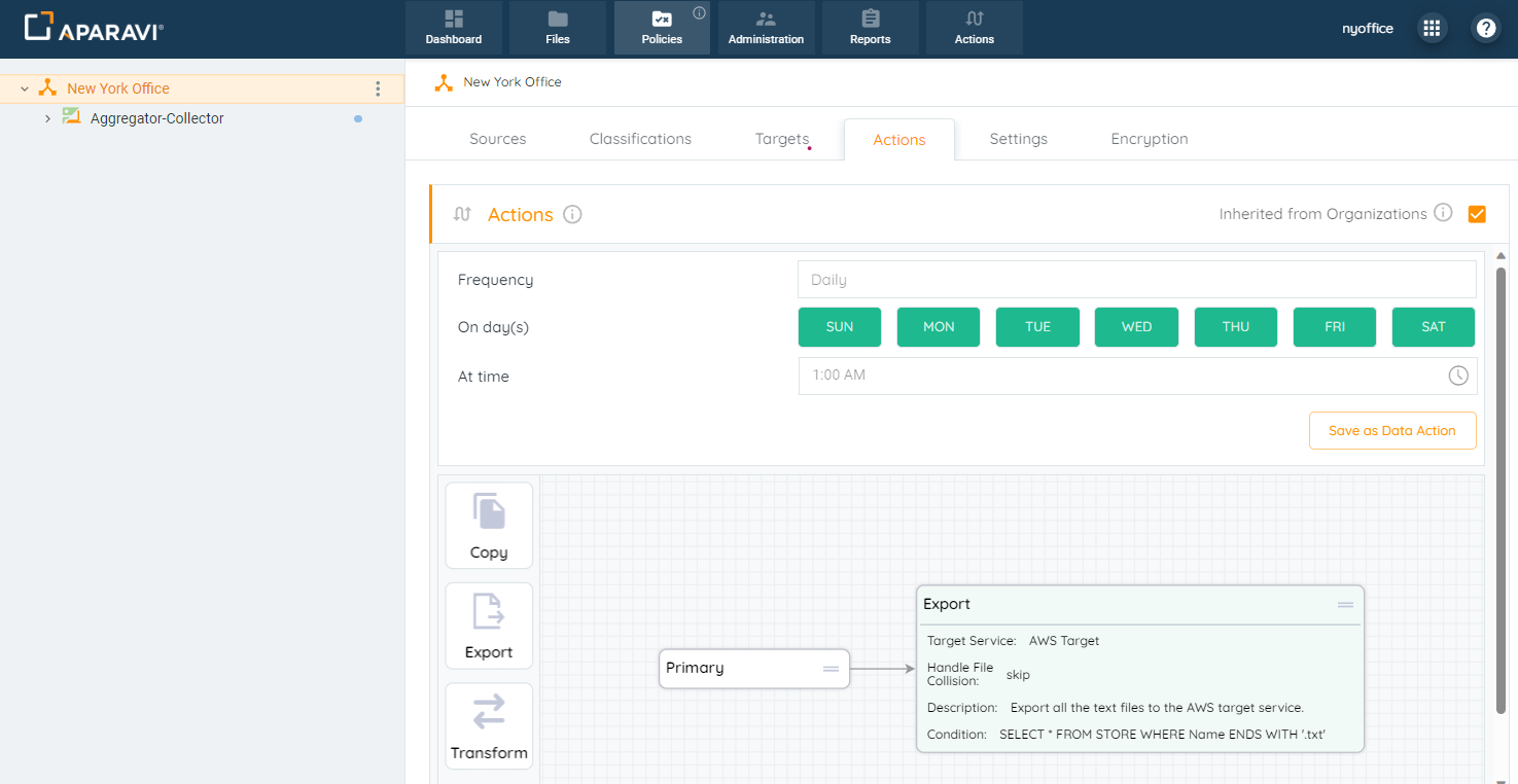 - From now on, the node would inherit the Export Action configured as the node above it.