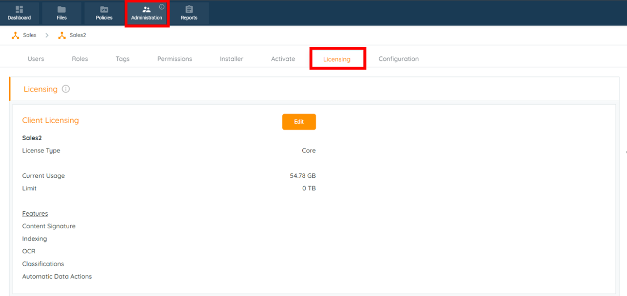 When in the Licensing tab you will find the following options that can be Enabled / Disabled by clicking on the “Edit“ button.