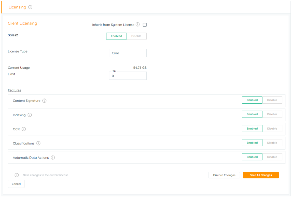 At any point in time, one can only change the license settings for their corresponding sub-Clients and not the Client itself.