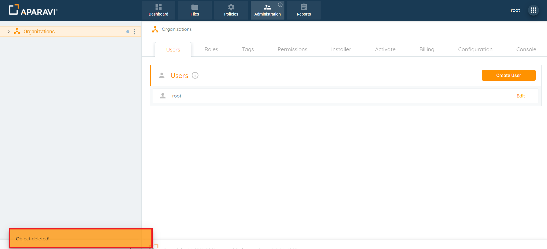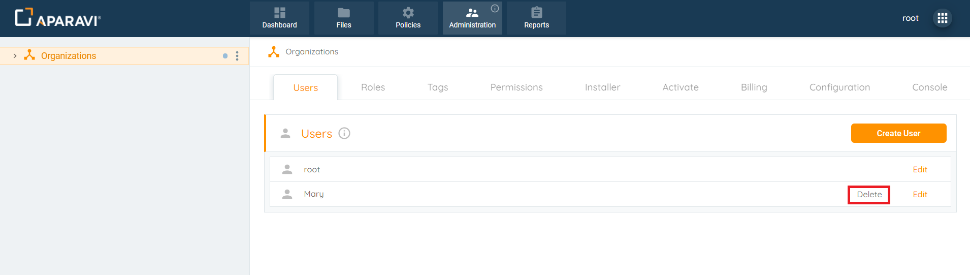 Once a user account has been created, it can also be deleted. Once a user account has been deleted, the user will no longer be able to access the Aparavi system.