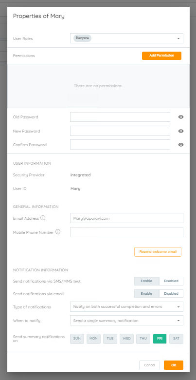 - Fill in user details, including Username, Email Address, Mobile Phone Number, and activation preferences.