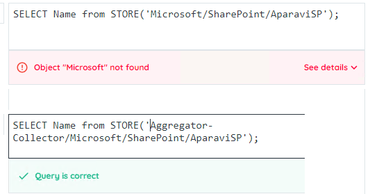 FROM STORE('Aggregator-Collector/Microsoft/SharePoint/AparaviSP')