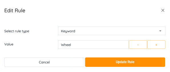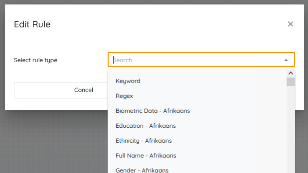 You’ll now have an option to define your rule. Most custom rules will be KEYWORD based.- REGEX rules allow you to create a REGEX rule. REGEX is a language for data and format matching.