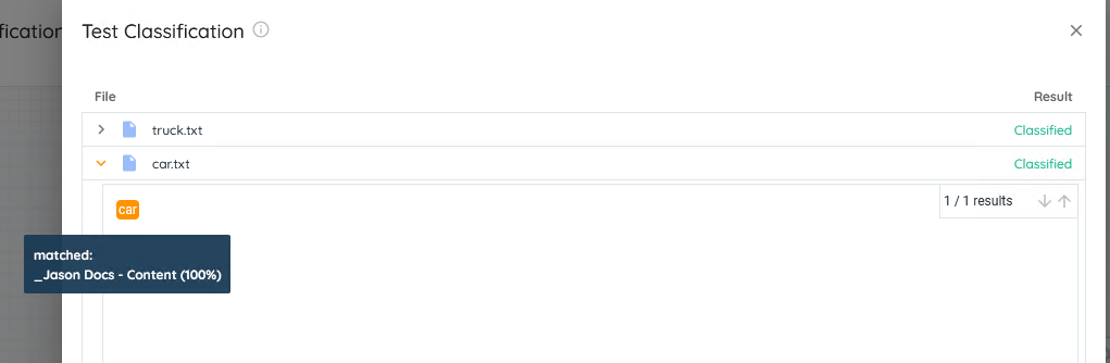 - Once you click UPLOAD, the file will process and it will show you what the classification is and why.
