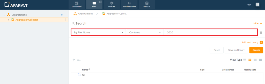 - Perform File Search by selecting the search criteria, using the file search fields.