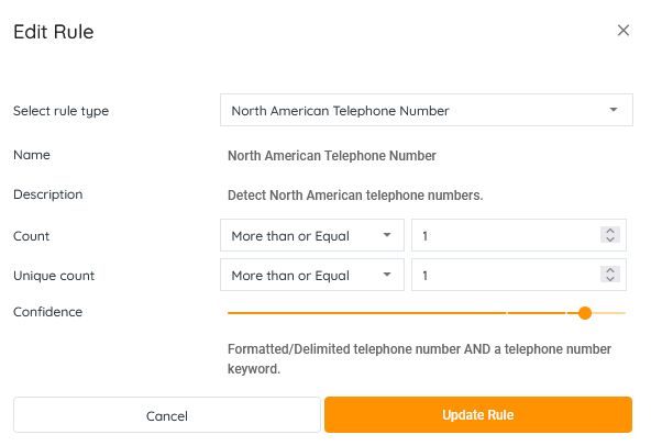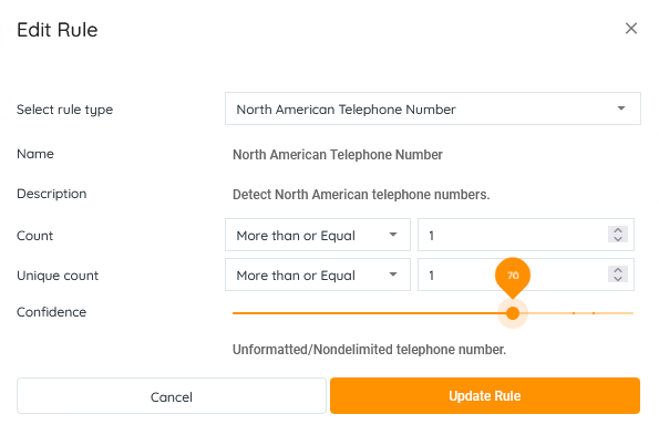 - ConfidenceΒ β Confidence value bar according to the sensitivity of the rule created.