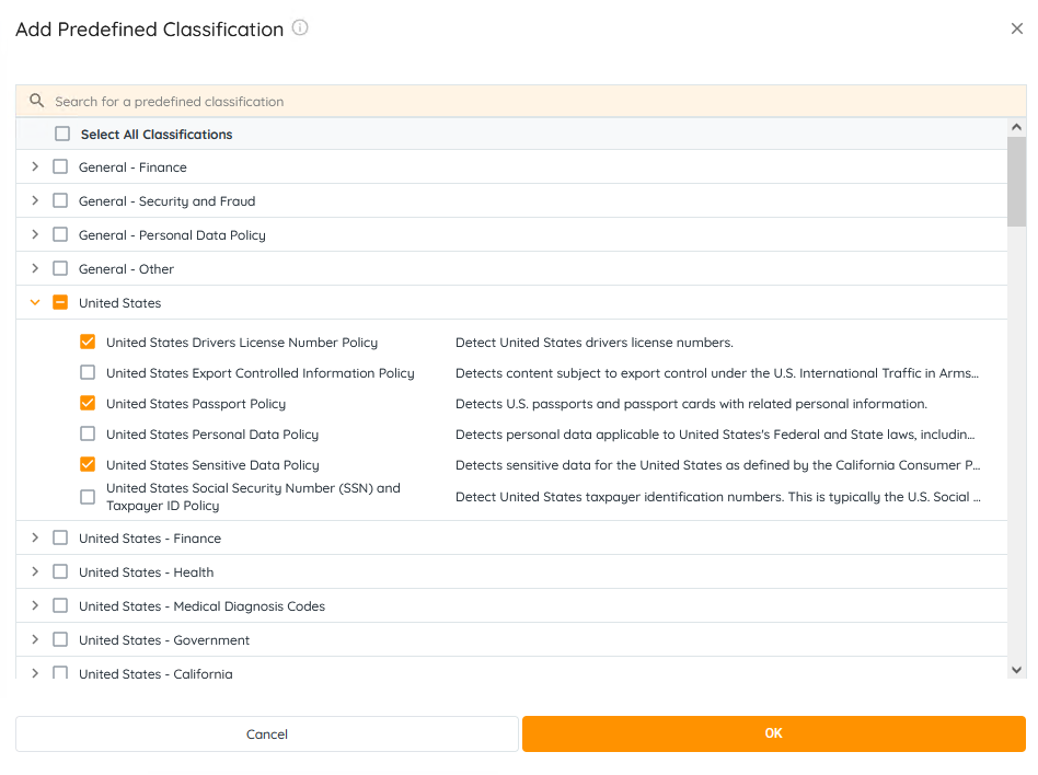- Like Custom Classifications, click ADD CLASSIFICATION and choose PREDEFINED CLASSIFICATION.
