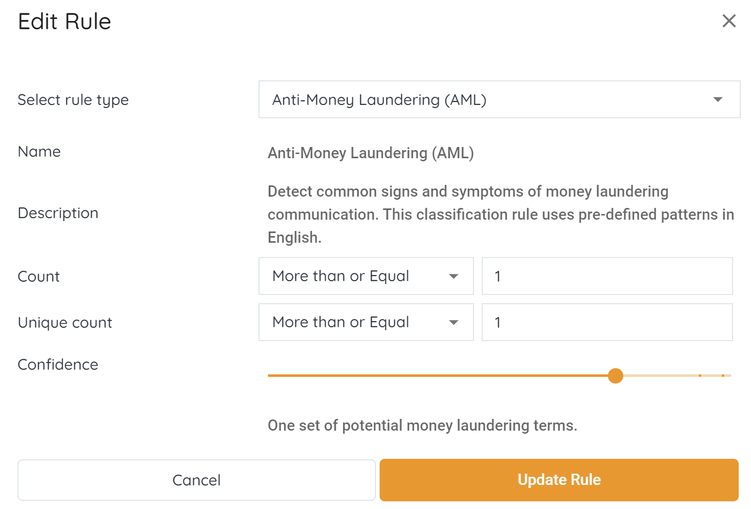 If you click the GEAR icon, you can refine the confidence level and configuration for the rule.