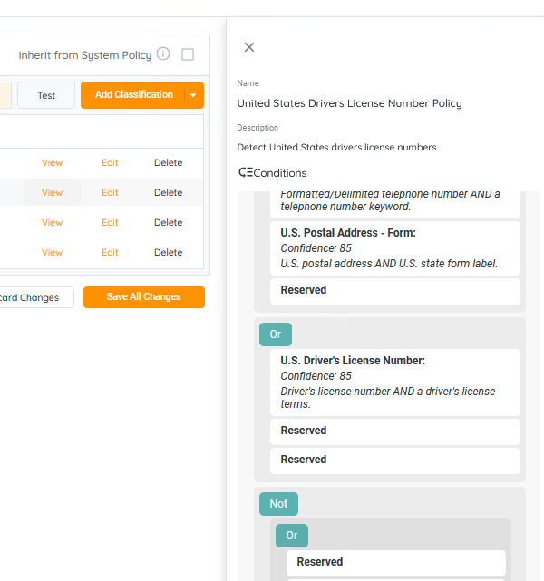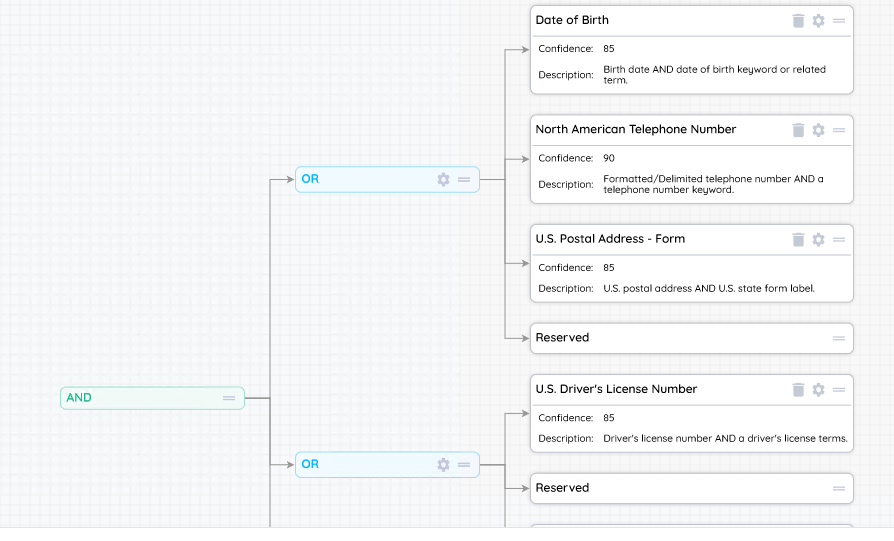 Classifications are created by combining small specific rules with other small specific rules to create a larger weighted classification. Predefined Classifications are built into Aparavi to handle complex rules that may not be possible with Regex or Keyword searches.