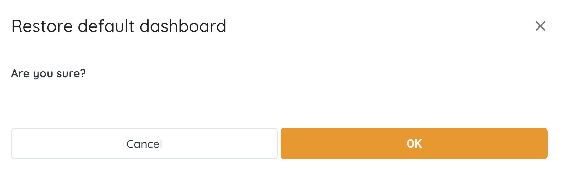 - The Restore default dashboard pop-up box will appear to confirm the restoration of the Dashboard.
