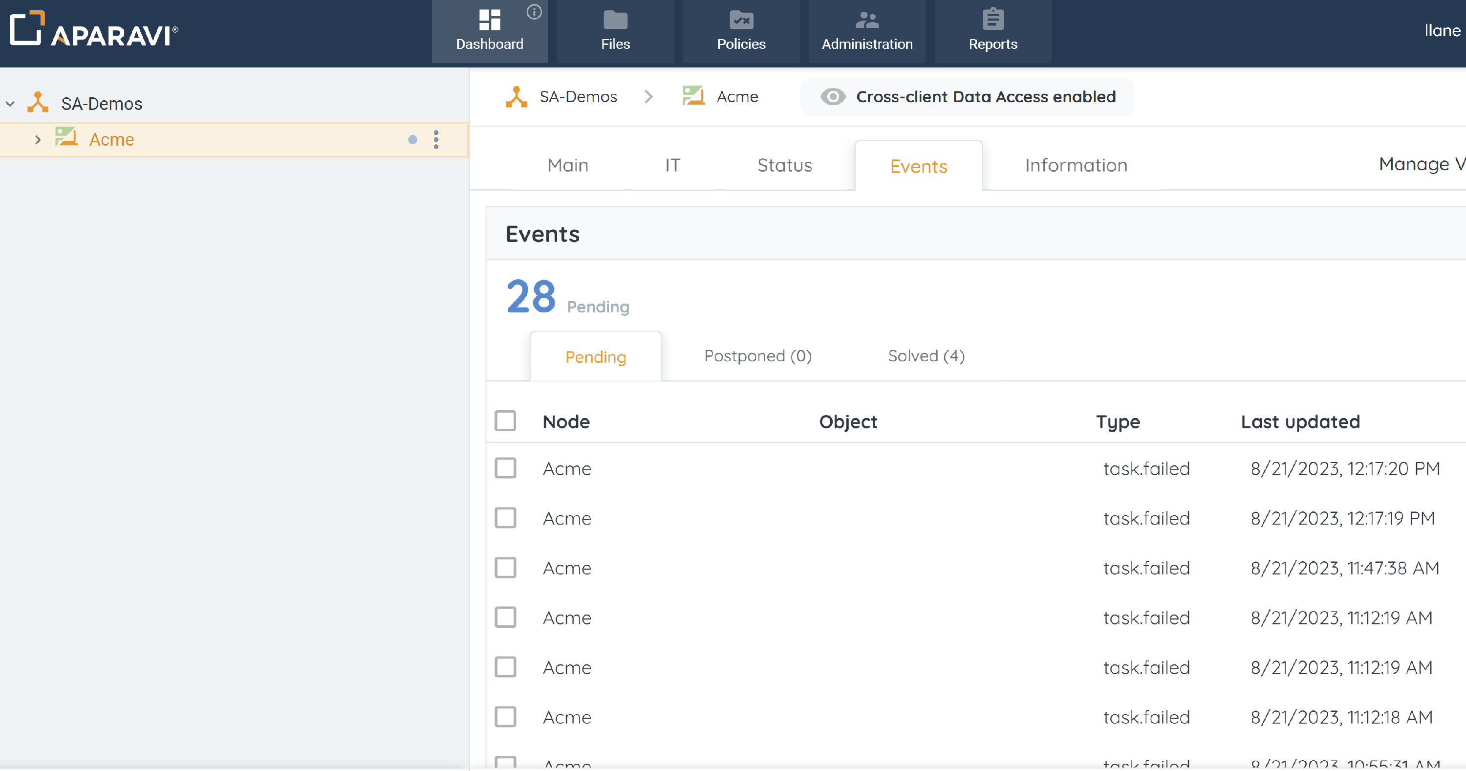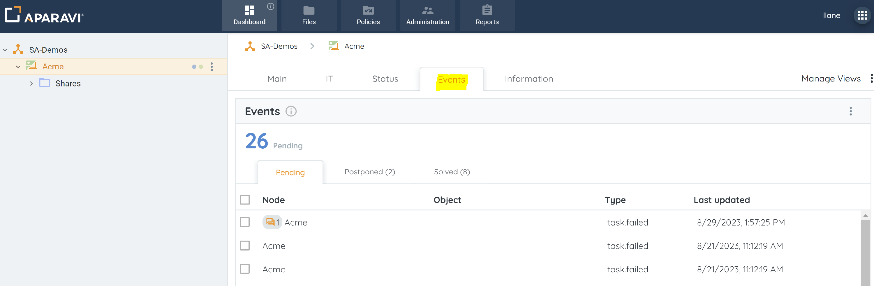 - Postponed – displays a list of events that a user has moved to this tab to be resolved later.