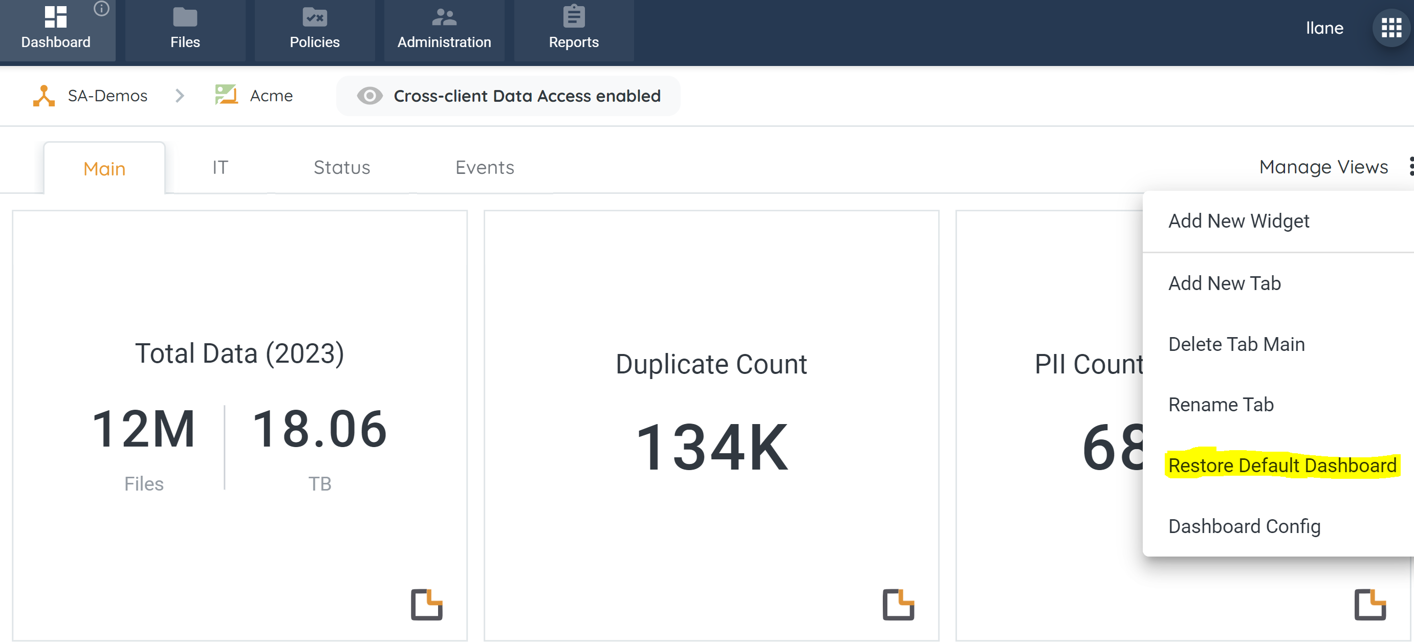 - Click on the Restore Default Dashboard option from the menu that appears.