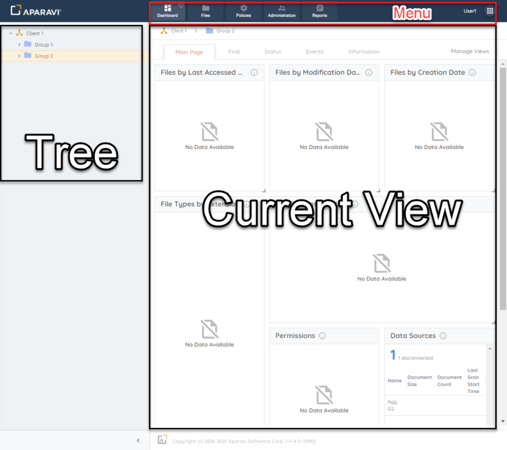 There are three Navigation Areas within the Aparavi Platform, they are:
