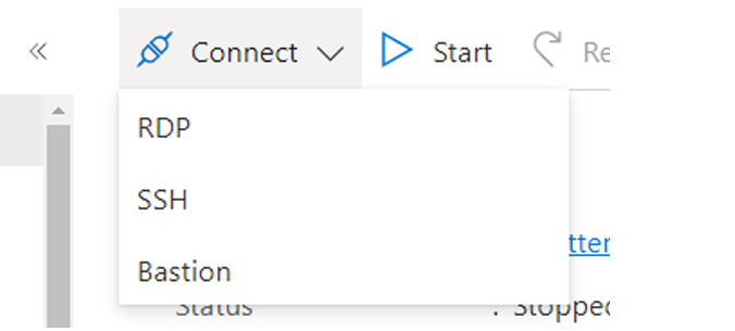 When wanting to connect to the VM you have options of RDP, SSH, and Bastion.