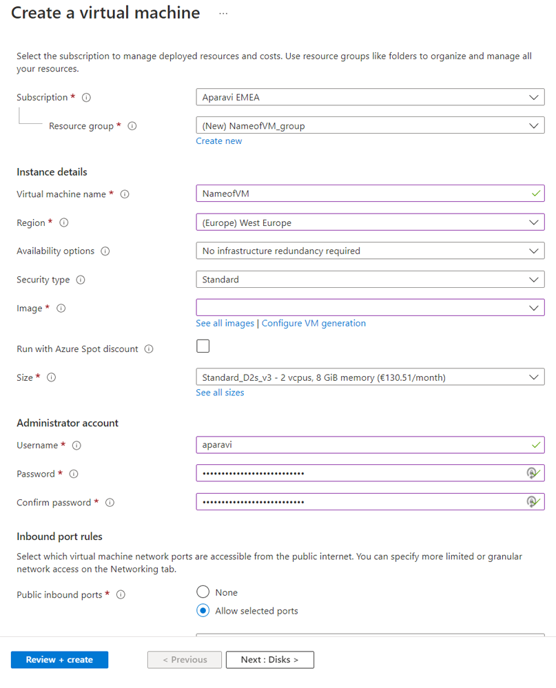 This document outlines the basics of a VM and system requirements for the APARAVI software in the Azure environment.