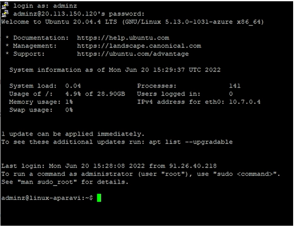 A terminal window will open where you will need to input your username and password that was configured in the creation of the VM. When done you would have successfully connected to the Linux Distro to start your APARAVI software installation.
