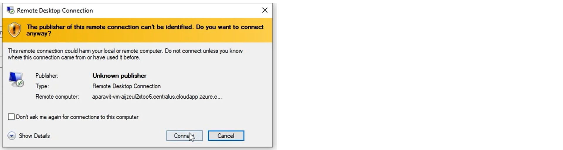 - Run the RDP executable and a window will appear to establish the connection click on “ Connect “
