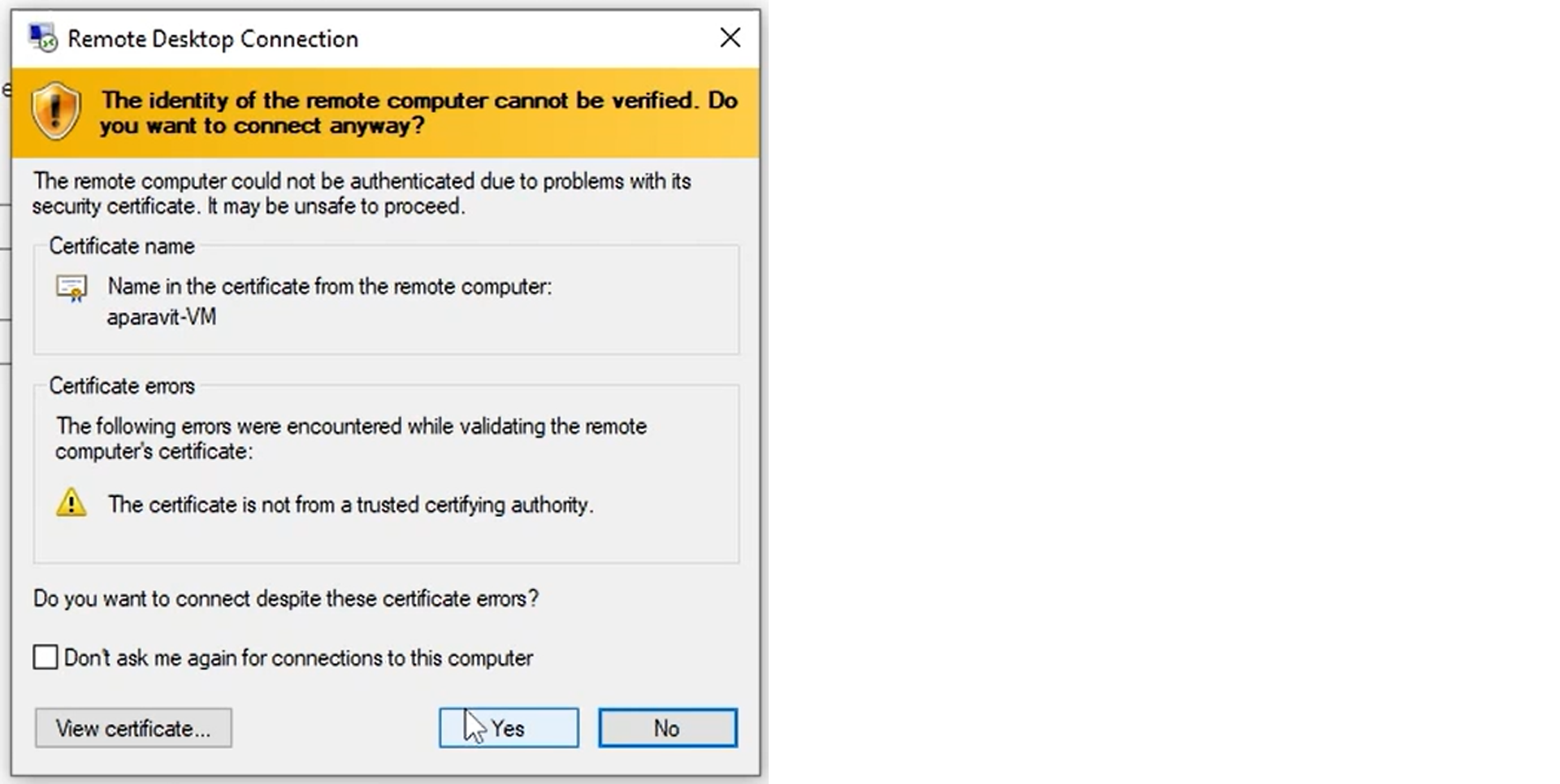 - You have the option to view the certificate and click on “ Yes “ if you agree.