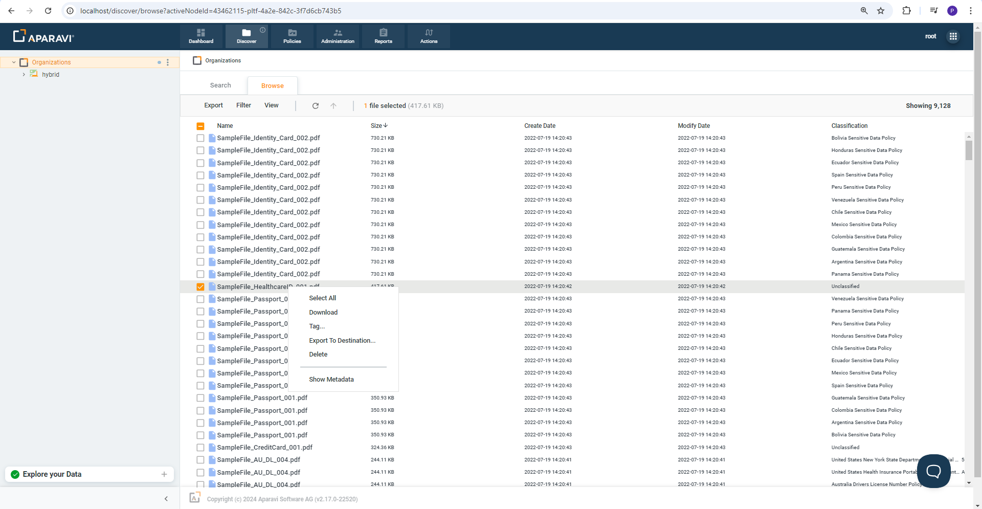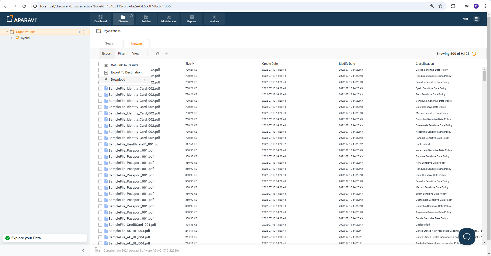 Now, APARAVI is capable of recursively fetching all kinds of unstructured data from these site collections and provide data intelligence to it.
