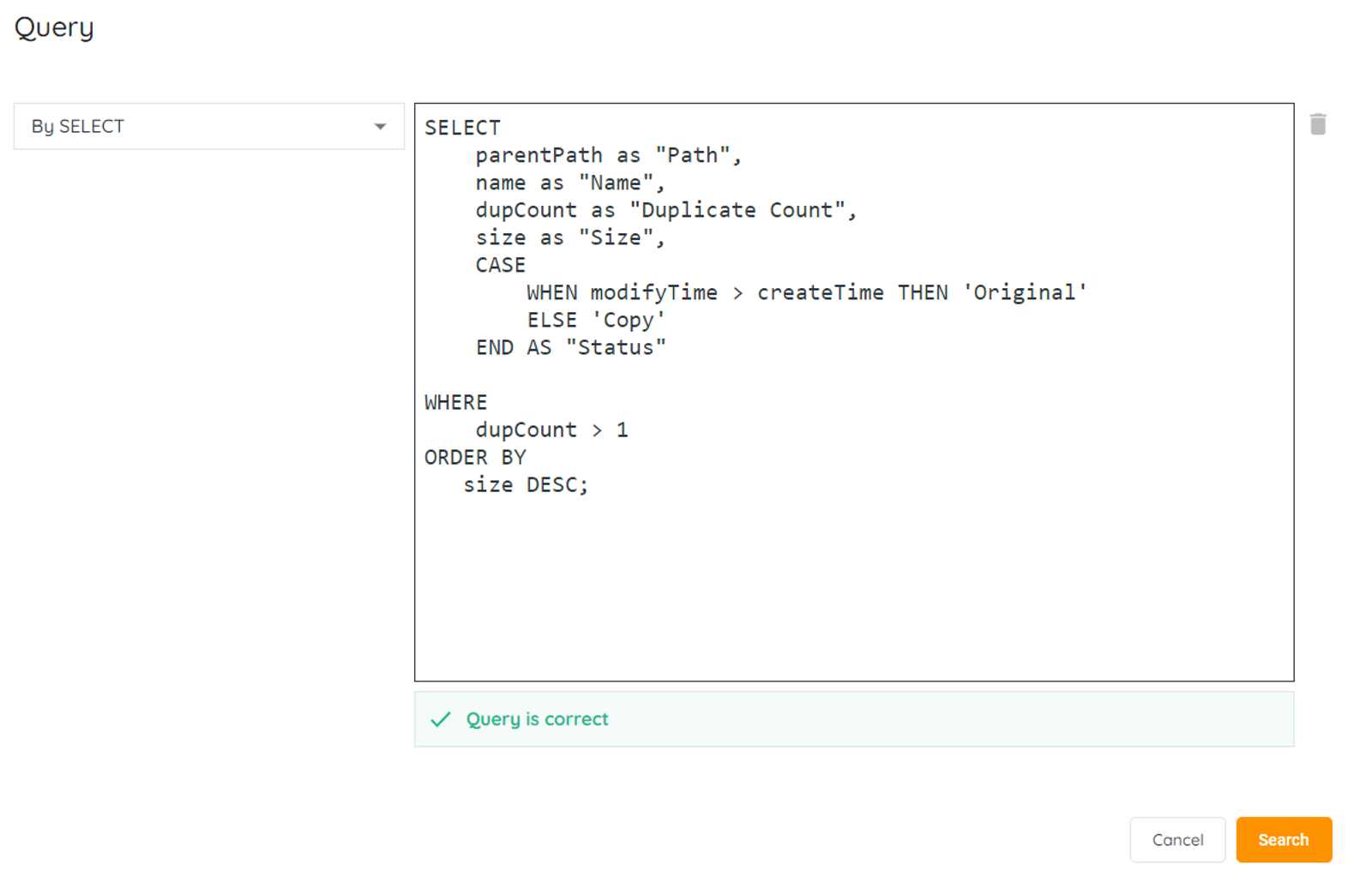 - A new window will appear with the AQL select query. Within this query window, you are able to edit or add details to the AQL query to suit your search criteria.