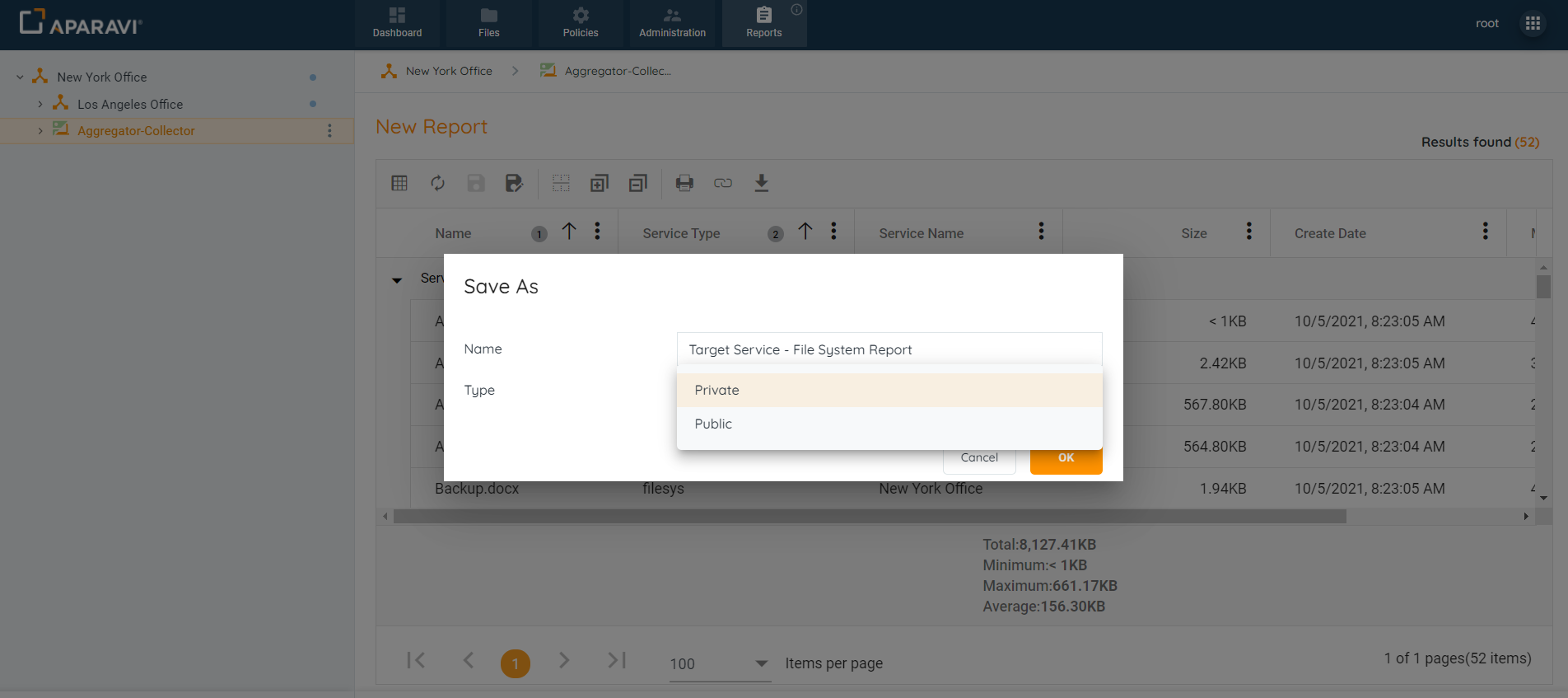 - Public reports:Ā can be viewed by all Aparavi users within the same organisation, enabling quick results to be shared.