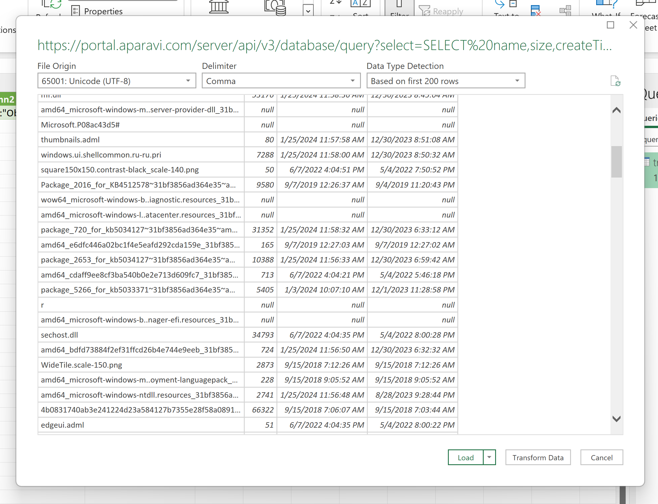 - Once the changes have been saved, Microsoft Excel will produce another pop-up box, displaying all the query data that was converted to the generated link. Click the Load button located at the bottom of the pop-up box.