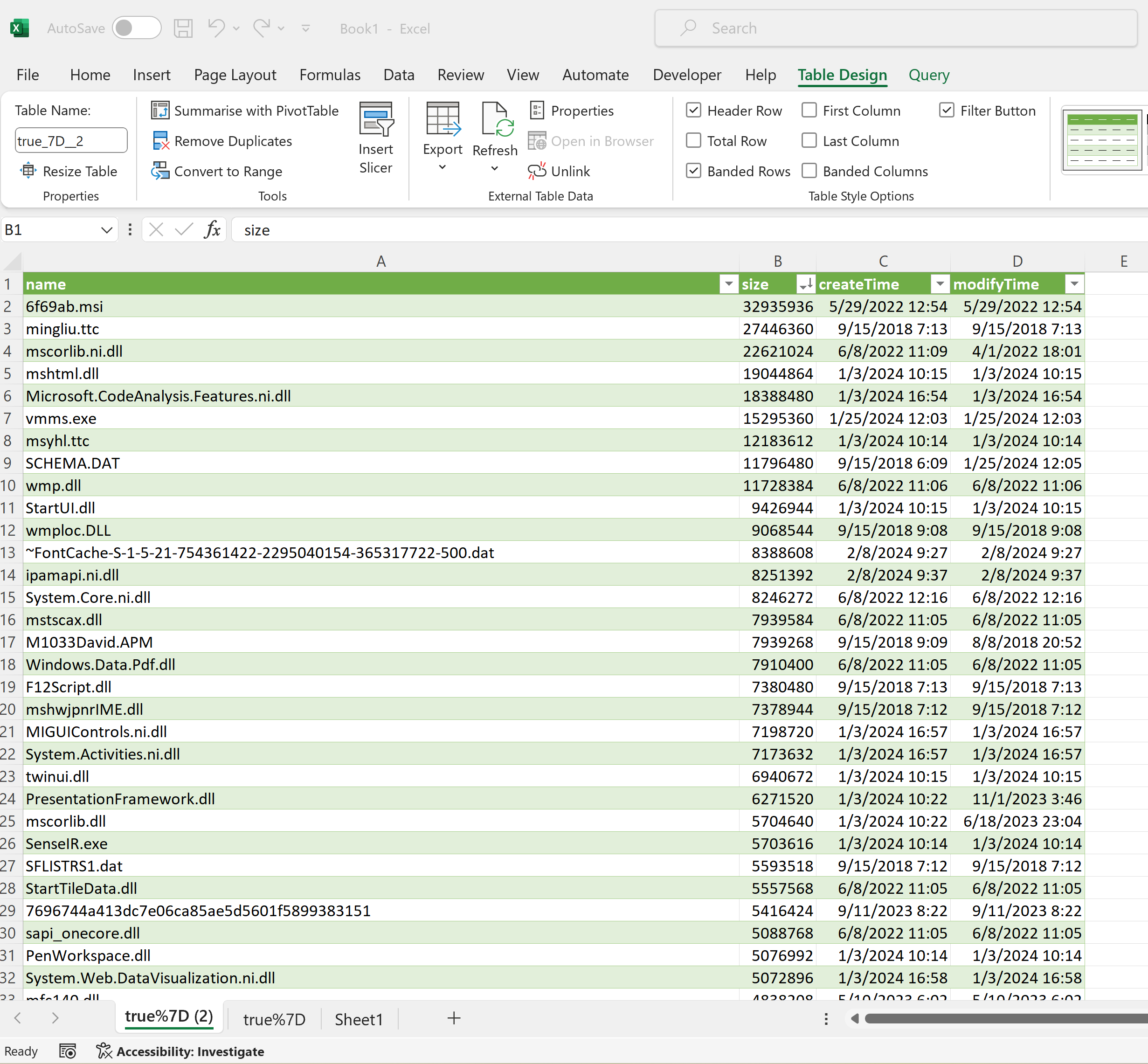 If new files meet the criteria of the custom report stored in the system, the spreadsheet is automatically updated to include the newly scanned files by clicking the Refresh All button on the Data navigation tab.