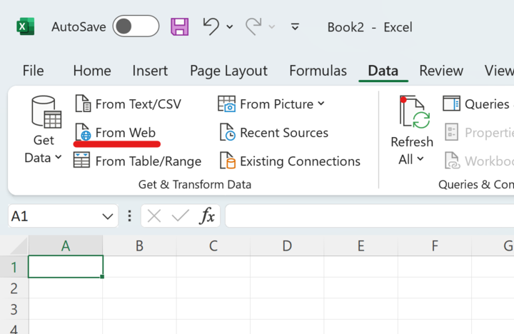 - Open Microsoft Excel on the local host machine and click on the Data navigation tab. Once there, click on the From Web button, located in the upper left-hand side of the Excel spreadsheet toolbar.