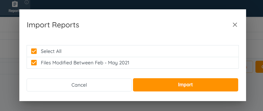 - Once the button is clicked, the Import Reports pop-up box will appear.