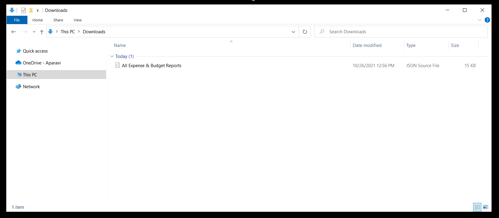 - Aparavi will generate the file for the selected reports and when complete, it will be in your downloads folder