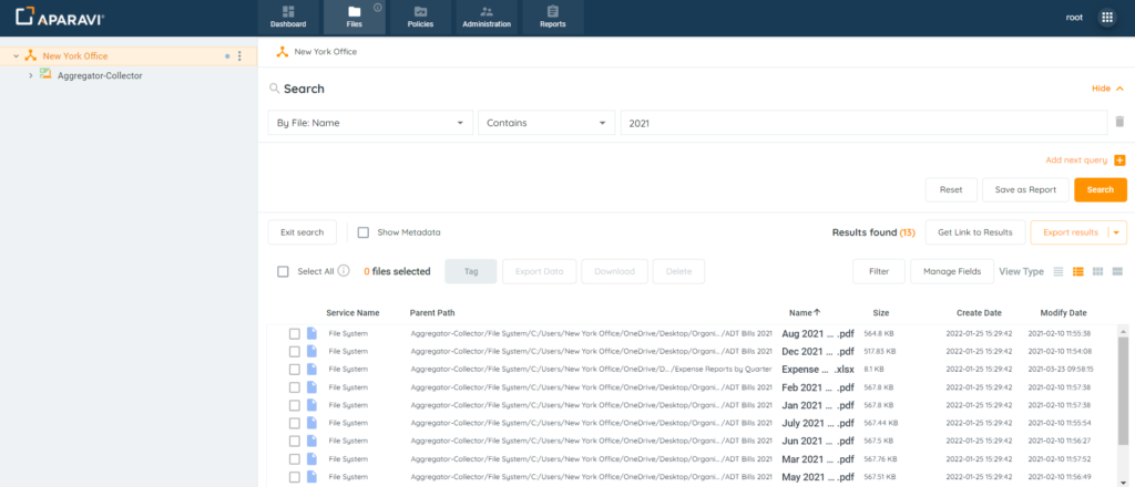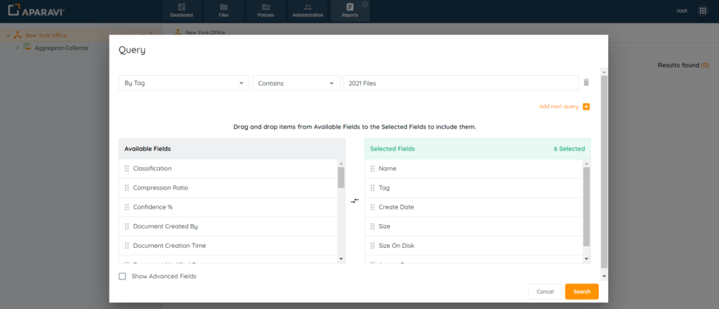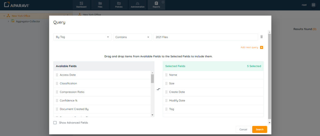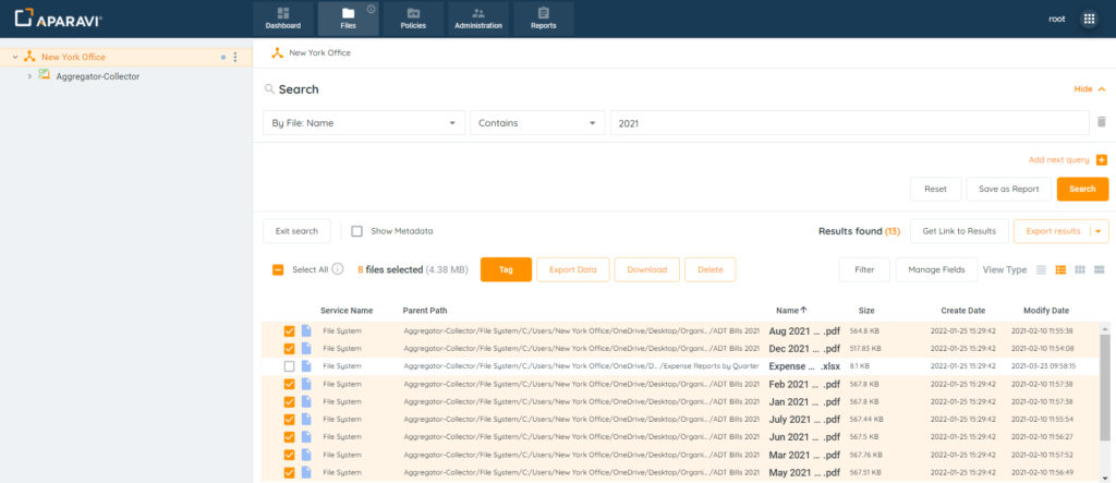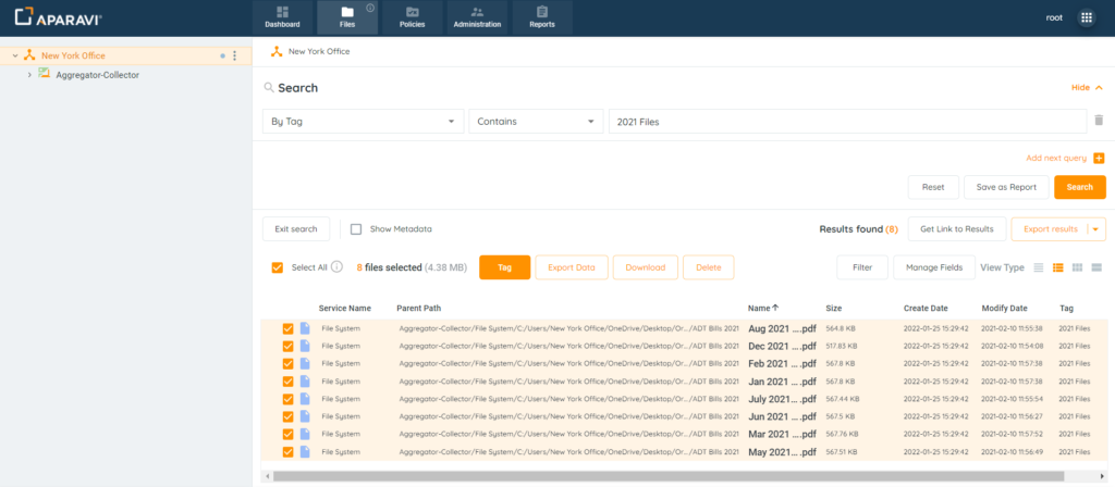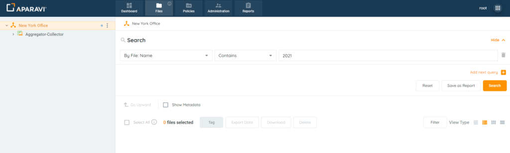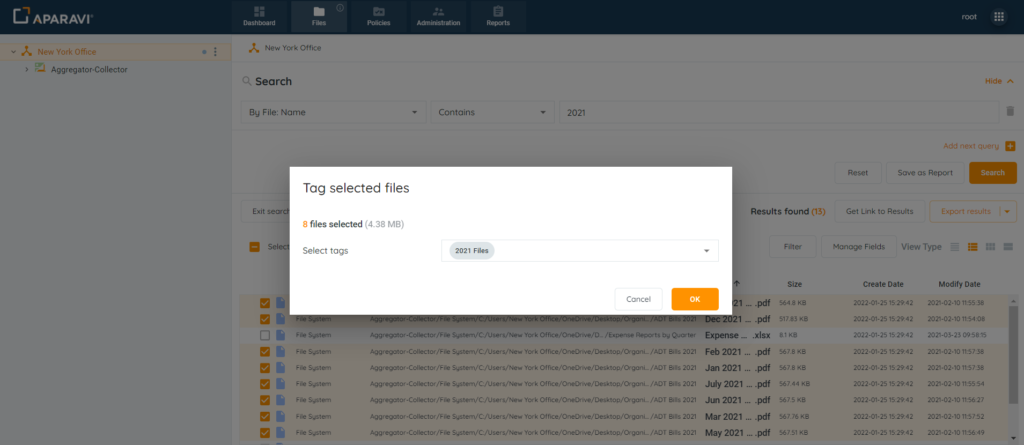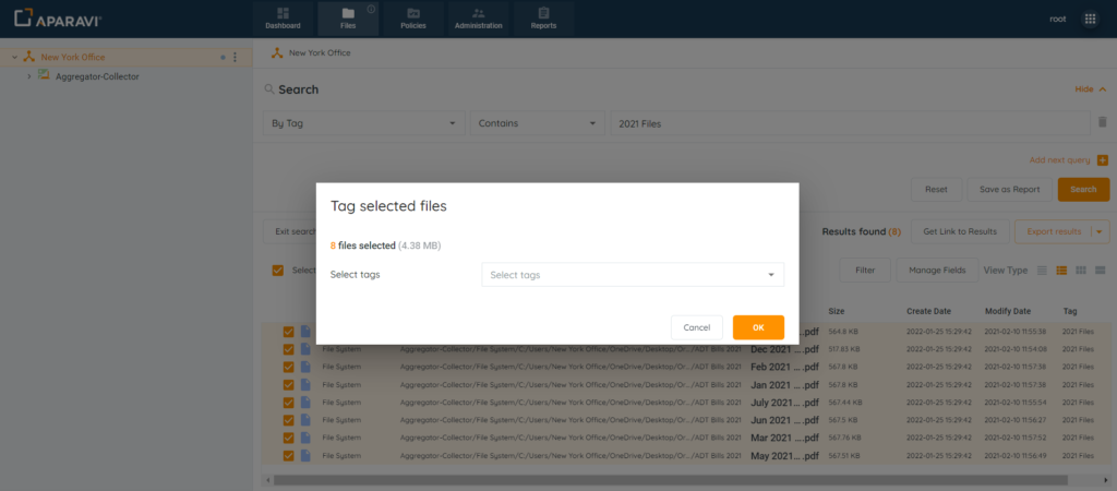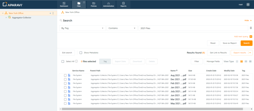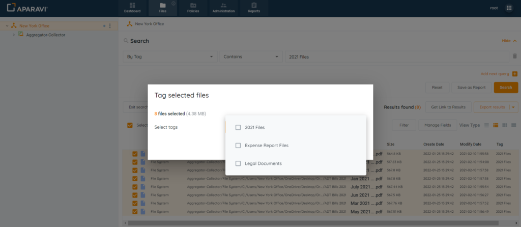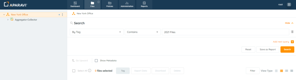 - After files have been tagged, file searches and reports can be generated to view only the selected files.