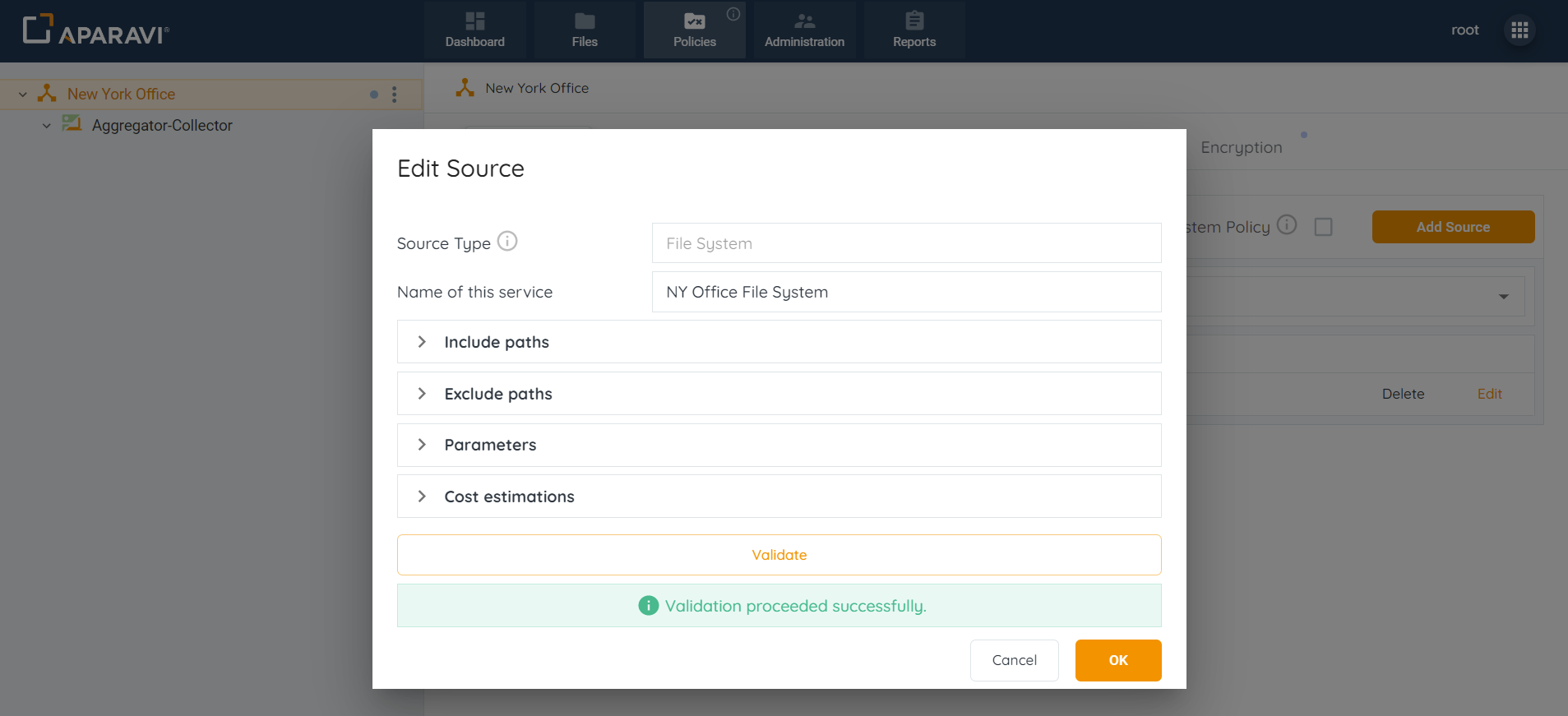 Once the sections within the Edit source pop-up box are updated, select the Validate button. Ensure that the validation is successful.