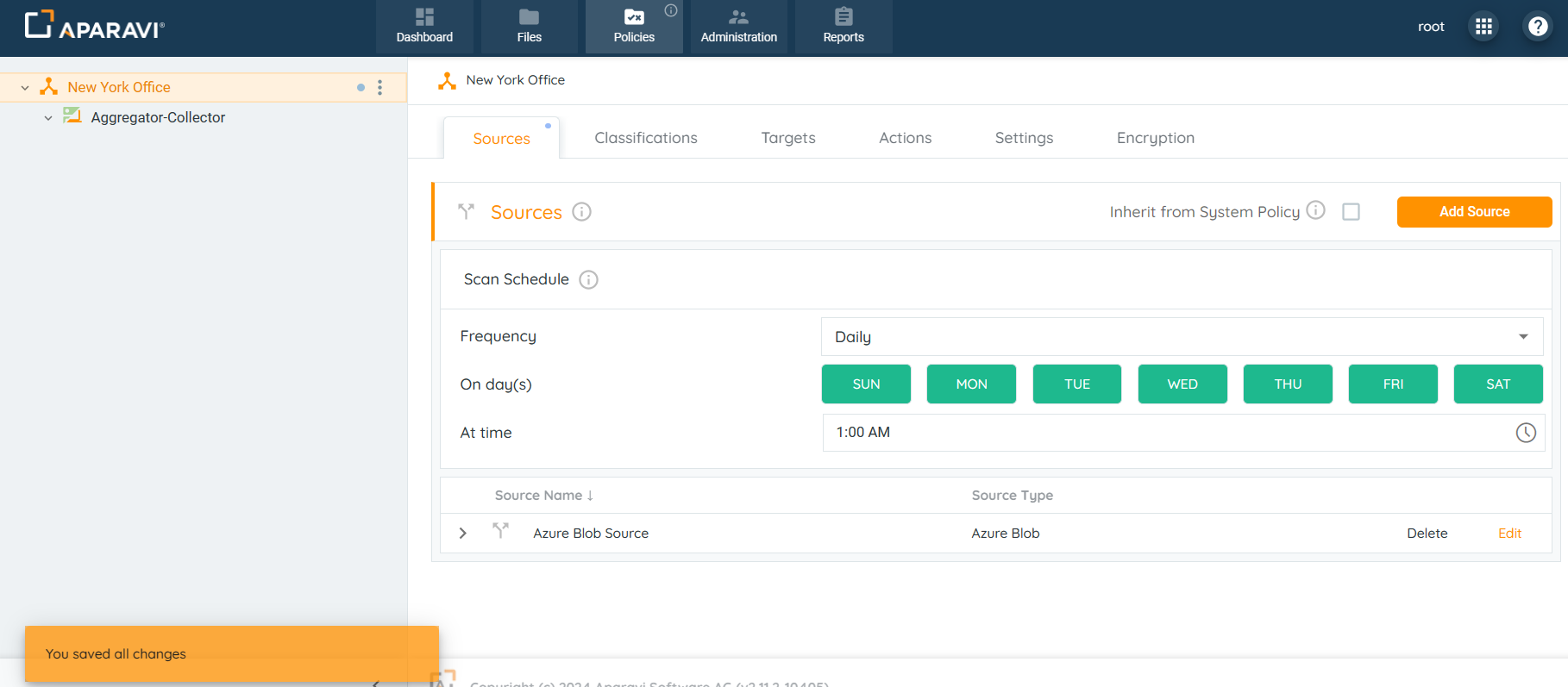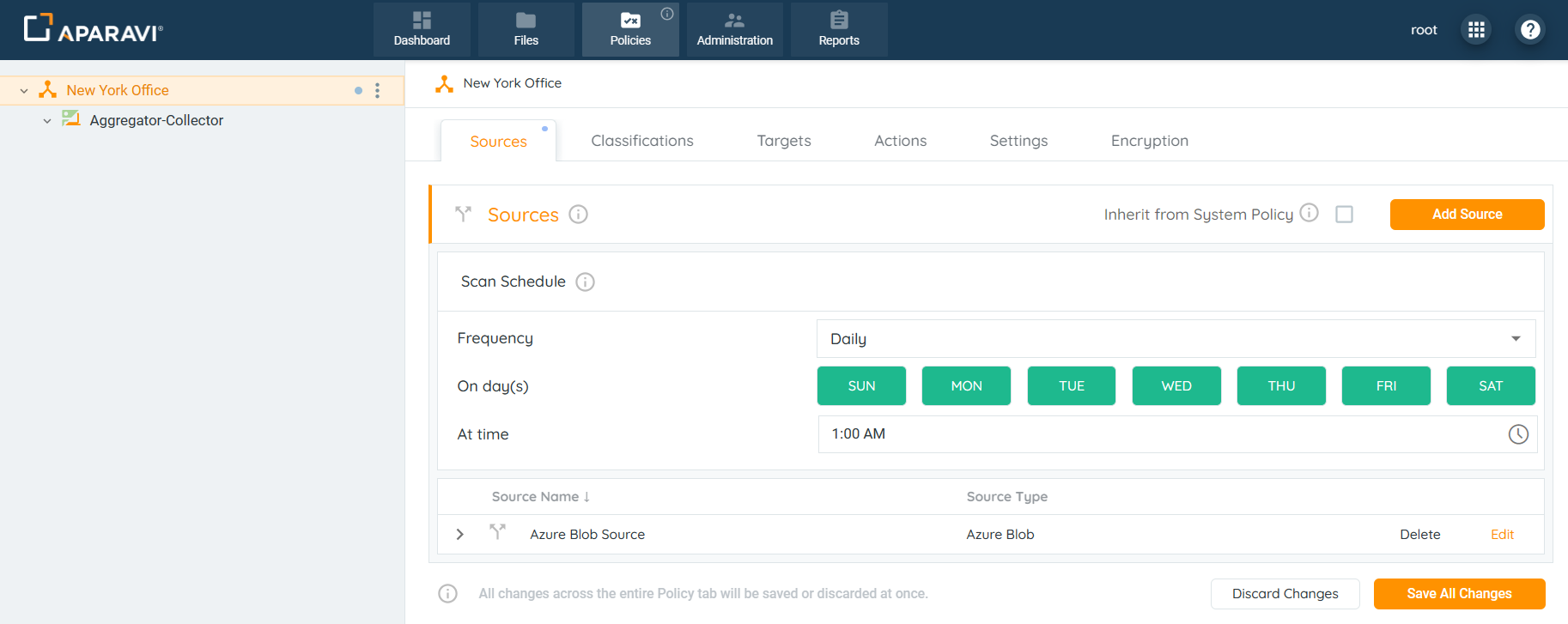 - Click on the Policies tab. By default, the system will navigate to the Sources subtab