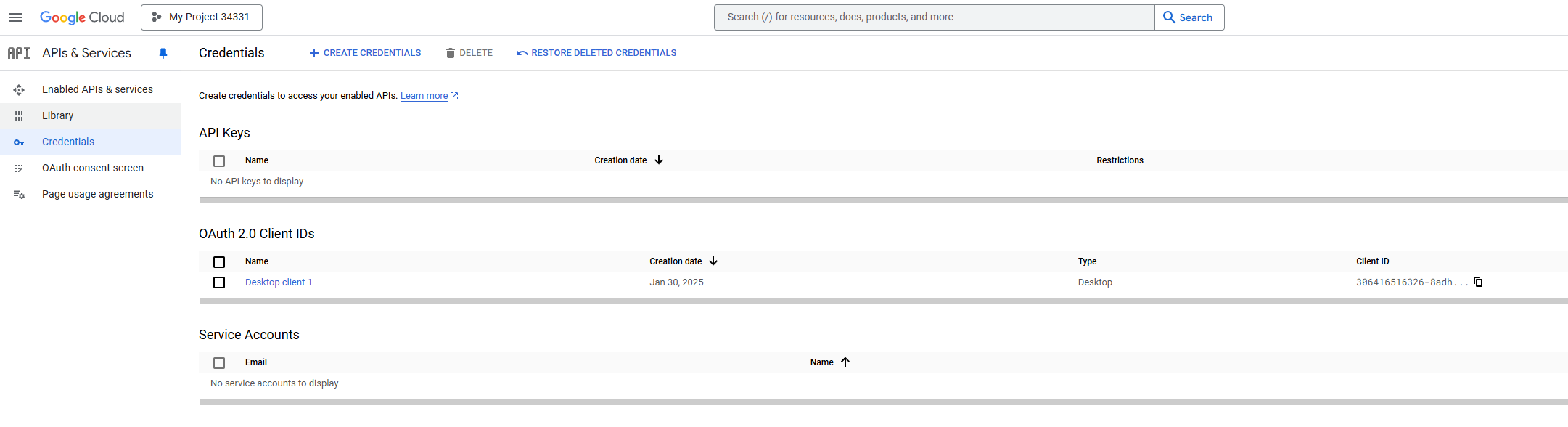 - Click OK. The newly created credential appears under OAuth 2.0 Client IDs.