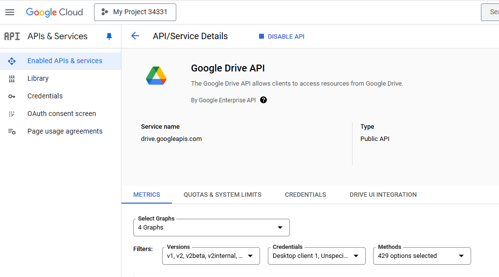 - Enable the Google Drive API: https://console.developers.google.com/apis/api/drive.googleapis.com
