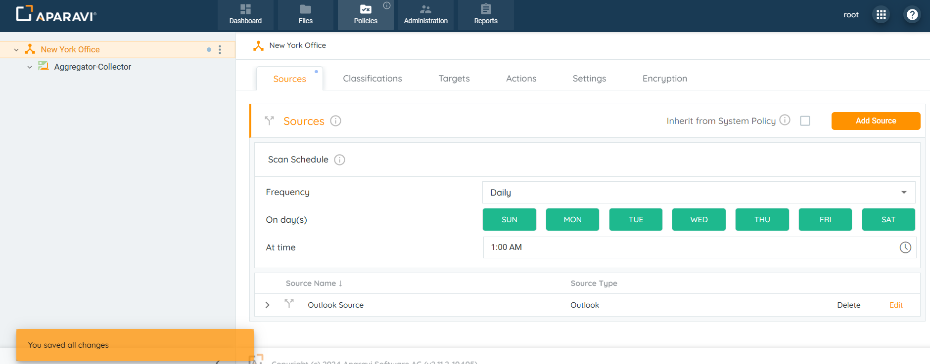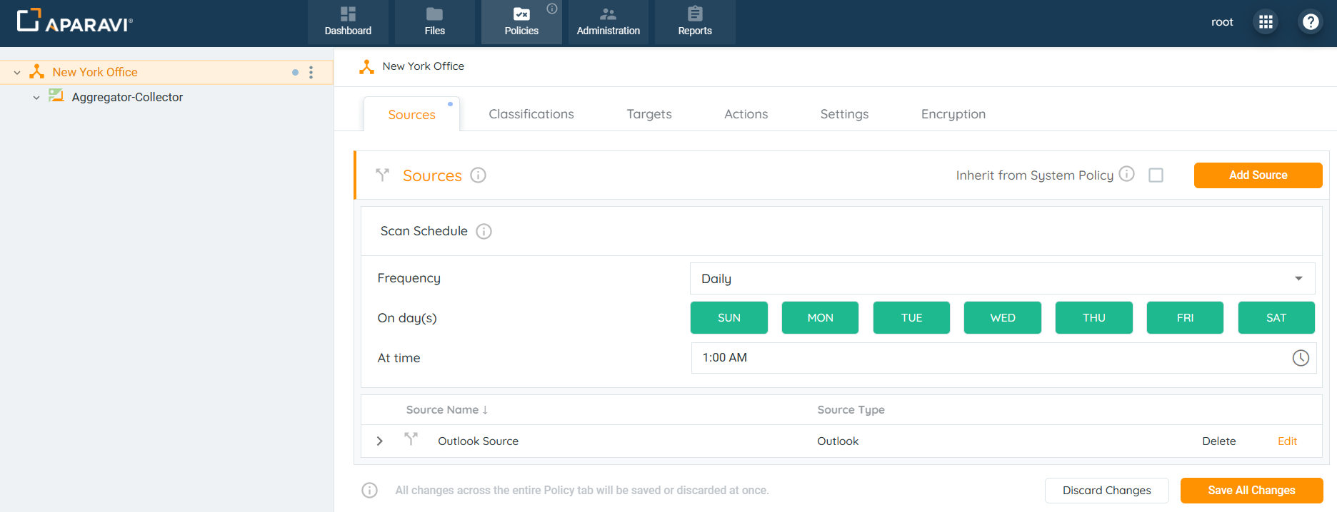 - Click on the Policies tab. By default, the system will navigate to the Sources subtab.