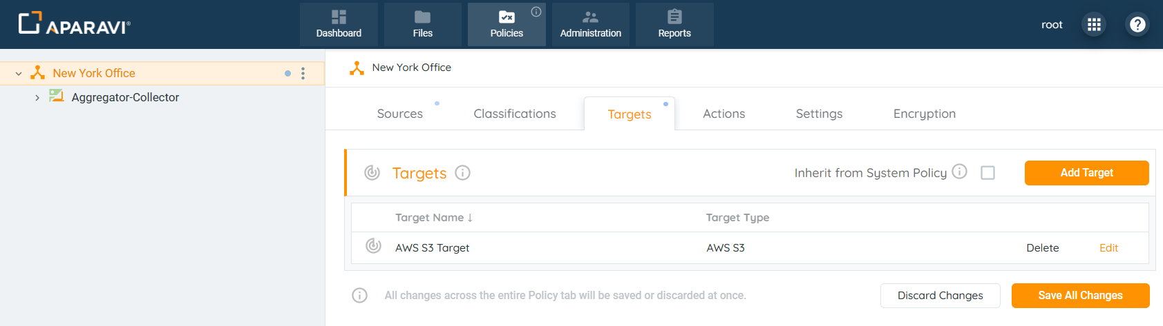 Creating targets allows the system to direct data into pre-configured data services. This enables businesses to build custom workflows for data hygiene, compliance, and retention use cases.