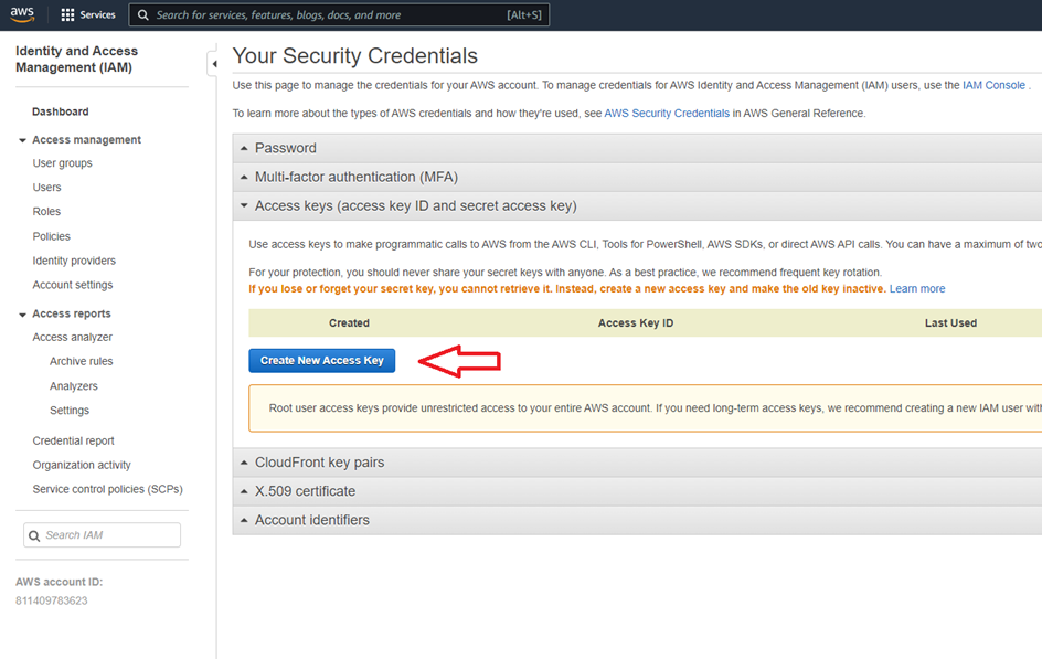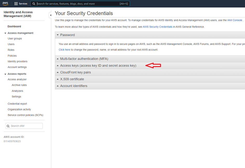 You can find your “Access Key” information in your AWS Management Console. Follow the steps to find the information.