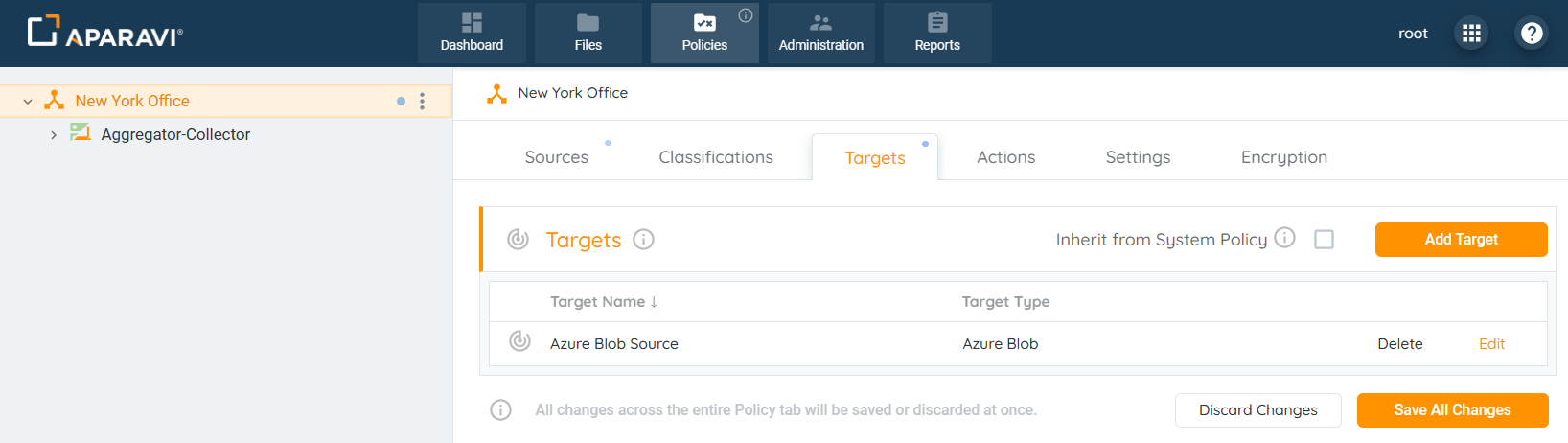 Creating targets allows the system to direct data into pre-configured data services. This enables businesses to build custom workflows for data hygiene, compliance, and retention use cases.