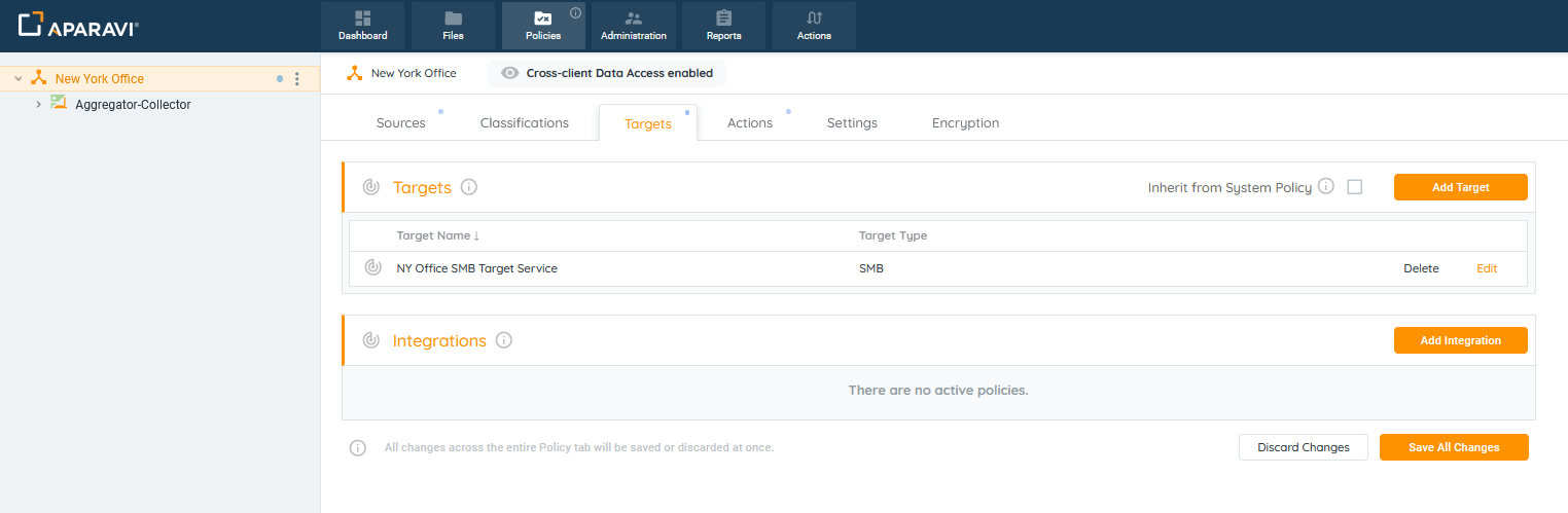 Creating targets allows the system to direct data into pre-configured data services. This enables businesses to build custom workflows for data hygiene, compliance, and retention use cases.