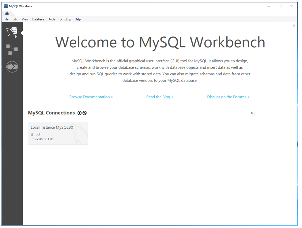 - Open and log in to the MySQL instance within the MySQL Workbench.